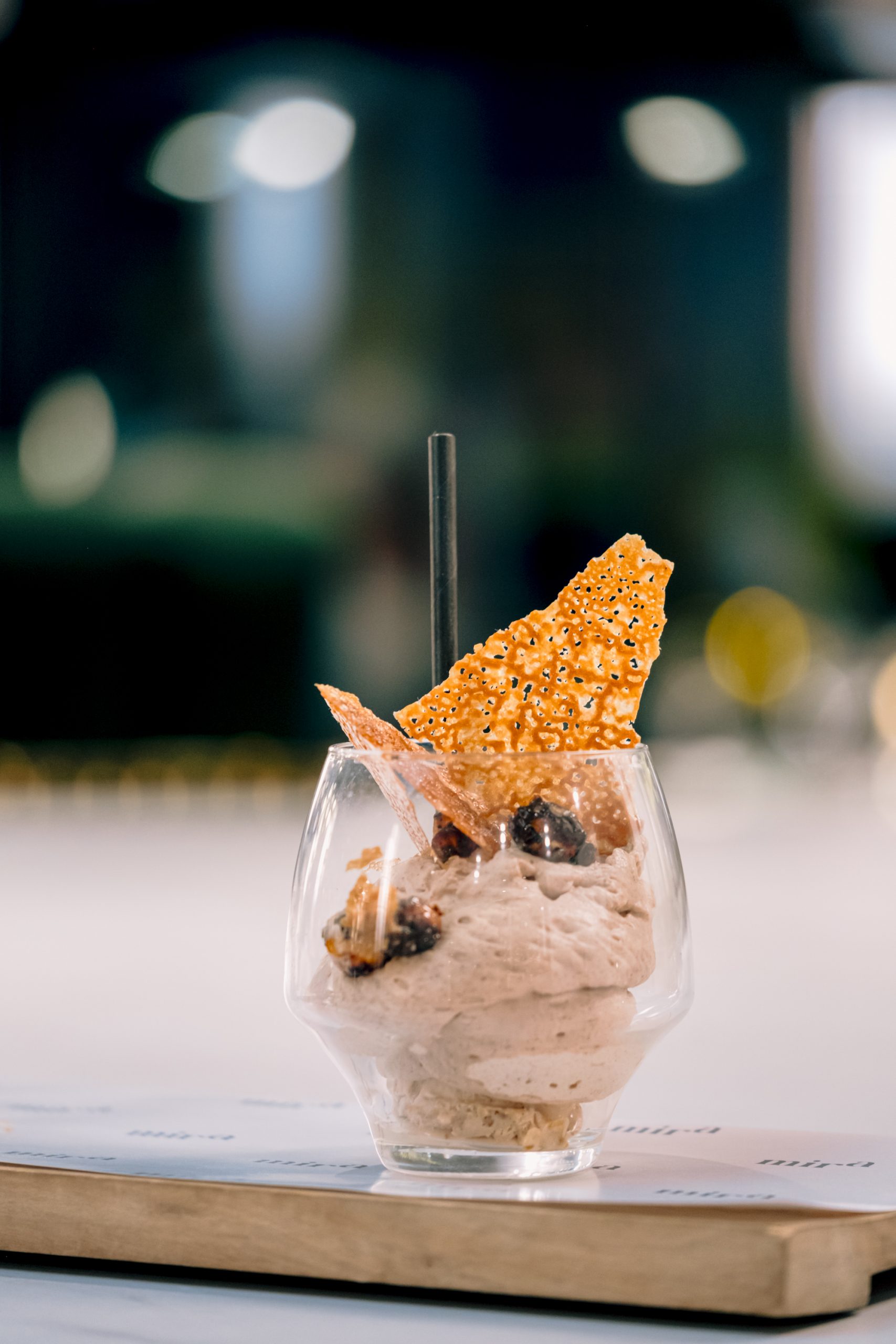 - 										Affogato di Mira, noisettes du Piémont & espresso (version Amaretto possible +2€) 10 €