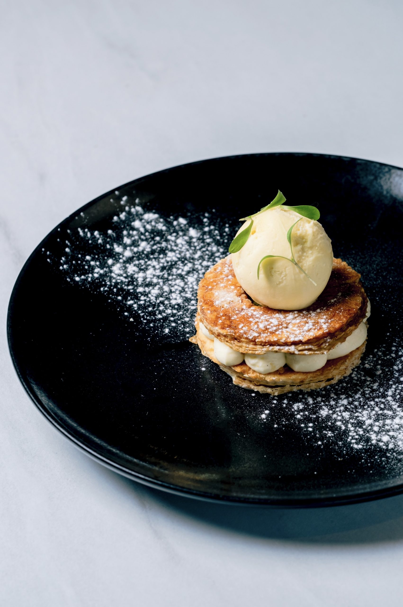 - 										Mille-Feuille Mangue-Passion, chiboust coulis rafraîchi 10 €